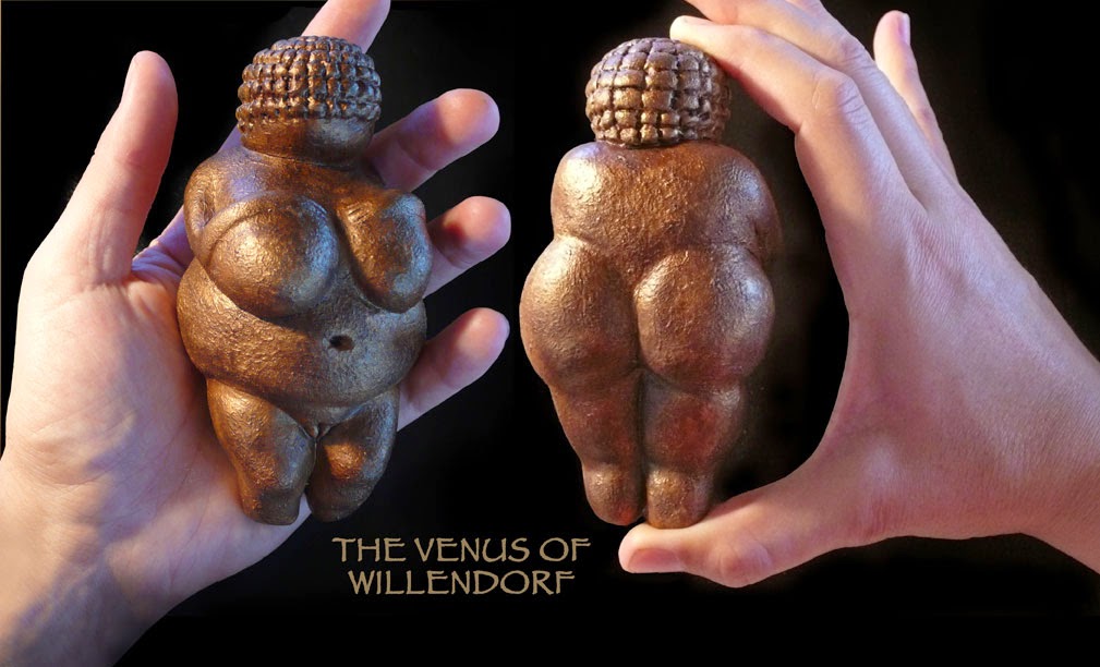 É curioso que nesses primeiros trabalhos em escultura, não existiam representações de figuras masculinas. Prevaleciam as formas femininas com ventres e seios volumosos. Um exemplo é a estatueta da Vênus de Willendorf, encontrada na Áustria e esculpida há mais de 25 mil anos.